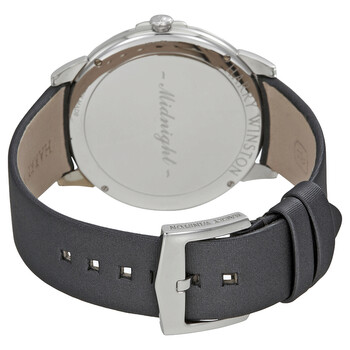 18kt white gold case with a grey satin strap. Fixed 18kt white gold bezel set with diamonds. Silver dial with silver-tone hands and index hour markers. Diamond-filled index markers at the 3, 6, 9 and 12 o'clock positions. Dial Type: Analog. Quartz movement. Scratch resistant sapphire crystal. Pull / push crown. Solid case back. Case size: 39 mm. Case thickness: 6.8 mm. Round case shape. Tang clasp. Water resistant at 30 meters / 100 feet. Functions: hour, minute. Additional Info: 103 brilliant-cut diamonds. diamond weight: 0.95 ct. Luxury watch style. Watch label: Swiss Made. Harry Winston Midnight Silver Dial 18kt White Gold Diamond Stain Unisex Watch MIDQHM39WW002.