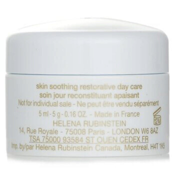 A clinically-inspired, soothing & anti-aging day cream. Silky bandage texture acts as a “second skin” that fuses into skin with a light film. Helps instantly calm, moisturize & protect while wrapping skin in a long-lasting comfort. Concentrated in a new advanced complex of three soothing ingredients - Niacinamide, Madecassosside & Tasmanol extract. Enhanced with a concentration of 9% Pro-xylane TM solution. Provides double efficacy by targeting skin discomfort & signs of aging. Perfect for all skin types, even the most sensitive ones. Design house: Helena Rubinstein. Series: Re-plasty Age Recovery Skin Soothing Restorative Day Care. Gender: Ladies. Category: Skin Care. SubType: Moisturizers. Size: 0.16 oz. Barcode: 3614273607025. Helena Rubinstein Ladies Re-plasty Age Recovery Skin Soothing Restorative Day Care 0.16 oz Skin Care 3614273607025.