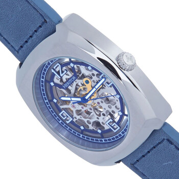 Band Color: Navy Genuine Leather; Band Width: 24mm near case; 22mm near clasp/buckle; Bezel Color: Silver; Case: Silver + Square-Shaped; Case Finish: Brushed + Stainless Steel; Case Thickness: 11mm; Case Width: 44mm; 47mm with Crown; Clasp / Buckle: Strap Buckle; Dial: Navy + Analog; Hand Color: Navy; Movement: Chinese + Automatic; Time Zones: Single; Water Resistance: 5 ATM.