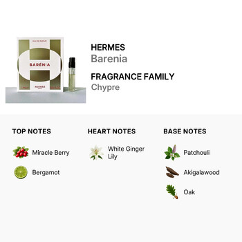 Barenia belongs to the Chypre fragrance family, known for its rich, earthy base and fresh citrus top notes. It opens with a unique burst of miracle berry and sparkling bergamot, instantly awakening your senses. At the heart, delicate white ginger lily adds a floral warmth that feels both graceful and empowering. The fragrance settles into a deep and lasting base of patchouli, akigalawood, and oak—creating a sensual trail that lingers beautifully.