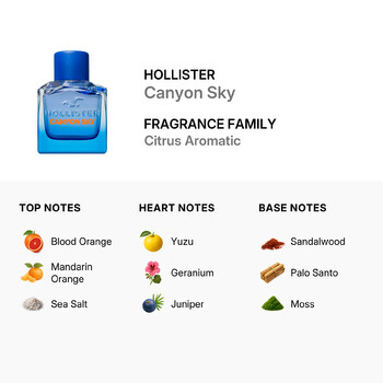 Available exclusively for shipment in the Contiguous United States and Canada, Hollister's Canyon Sky is a must-have addition to any man's fragrance collection. Embrace the freedom of the open air and let Canyon Sky be your signature scent. Discover the allure of Hollister's Canyon Sky and make every moment unforgettable.