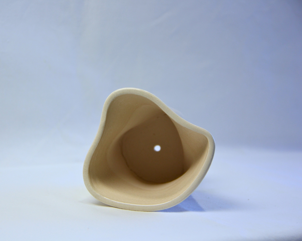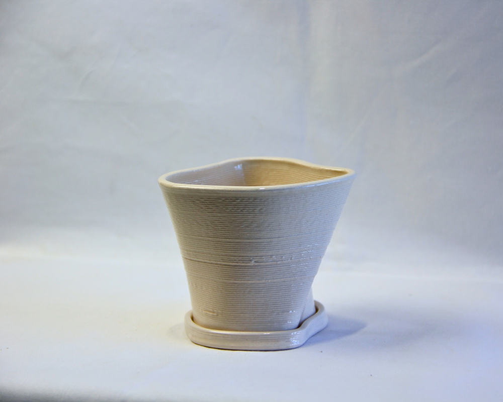 თეთრი თიხის მინიატურული ქოთანი სადგამით, შექმნილია თიხის 3დ პრინტერით, 2-ჯერ გამომწვარი და გარედან მოჭიქურებულია. მასალა ეკოლოგოურად სუფთაა და იდეალურია ოთახის ან აივნის მცირე ზომის მცენარისთვის. დიამეტრი 8 სმ და სიმაღლე 7 სმ.