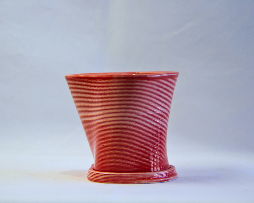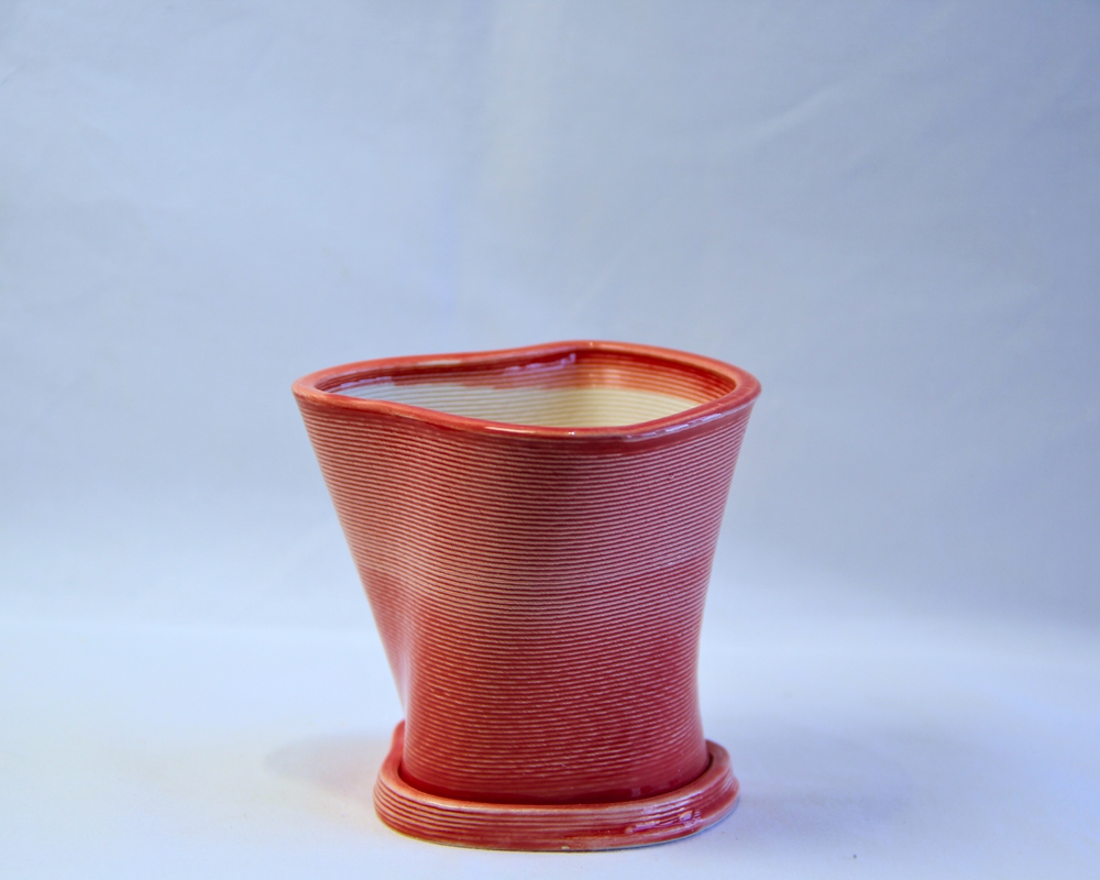 თეთრი თიხის მინიატურული ქოთანი სადგამით, შექმნილია თიხის 3დ პრინტერით, 2-ჯერ გამომწვარი და გარედან მოჭიქურებულია. მასალა ეკოლოგოურად სუფთაა და იდეალურია ოთახის ან აივნის მცირე ზომის მცენარისთვის. დიამეტრი 8 სმ და სიმაღლე 7 სმ.