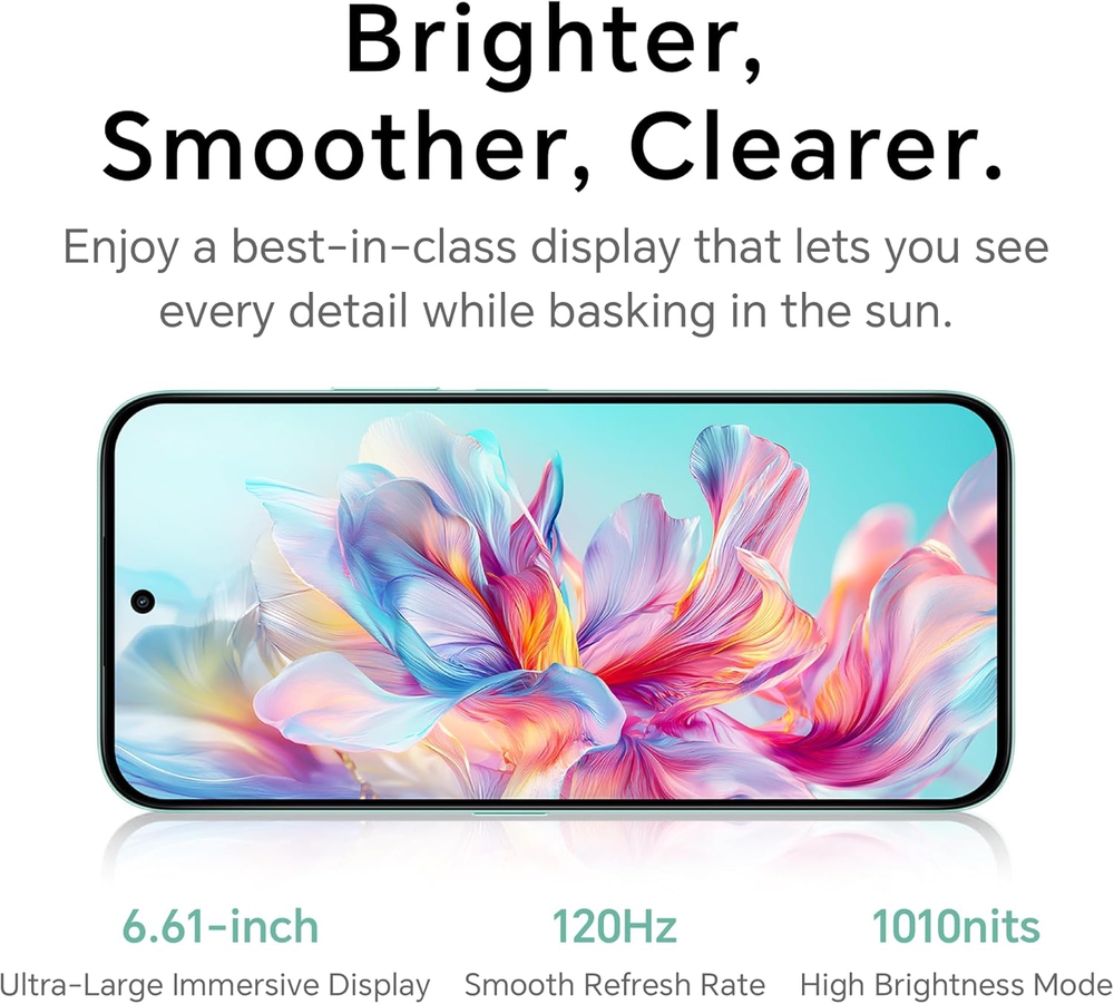 6.61"-იან მოცულობით ეკრანს კონტრასტული, ბუნებრივი ფერები აქვს და ემერსიულ გამოცდილებას გპირდება. ენერგოეფექტური და გამძლე ბატარეა, ერთი სრული დამუხტვით, ჩვეულებრივი მოხმარების პირობებში, 2 დღის განმავლობაში მუშაობს. ბატარეა უზრუნველყოფს: 17 საათიან ონლაინ ვიდეოს ყურებას, 25 საათიან - სოციალურ მედია ბრაუზინგს და 63 საათიან მუსიკის დაკვრას.