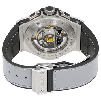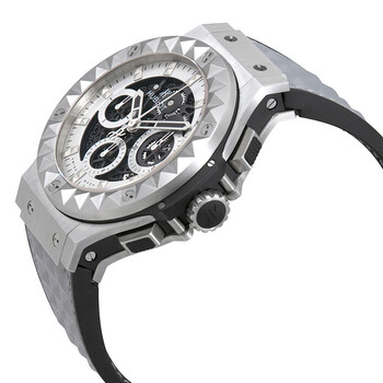 Stainless steel case with a white rubber strap. Skeleton dial with silver-tone hands and index hour markers. Luminescent hands and markers. Date display between 4 and 5 o'clock position. Chronograph - three sub-dials displaying: 60 second, 60 minute and 1/10th of a second. Automatic movement. Pull / push crown. Skeleton transparent exhibition see through case back. Case diameter: 44 mm. Round case shape. Deployment with push button clasp. Water resistant at 100 meters / 330 feet. Functions: date, hour, minute, second. Sport watch style. Watch label: Swiss Made. Hublot Big Bang Aero Bang Dial Skeleton White Rubber Men's Sports Watch 311.SX.8010.VR.DPM14.
