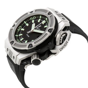 Titanium case with a black rubber strap. Fixed titanium bezel. Matte black dial with luminous grey hands and index hour markers. Arabic numeral minute markers (at 10 minute intervals). Minute markers around the outer rim. Dial Type: Analog. Luminescent hands and markers. Date display at the 3 o'clock position. Automatic movement with a 42-hour power reserve. Scratch resistant sapphire crystal. Screw down crown. Solid case back. Case diameter: 48 mm. Case thickness: 22.4 mm. Round case shape. Band width: 24.13 mm. Band length: 9.5 inches. Deployment clasp. Water resistant at 4000 meters / 13200 feet. Functions: hours, minutes, seconds, date. Sport watch style. Watch label: Swiss Made. Item Variations: 731 NX 1190 RX, 731-NX-1190-RX, 731/NX/1190/RX, 731NX1190RX. Hublot Big Bang King Power Matte Black Automatic Black Rubber Men's Watch 731.NX.1190.RX.