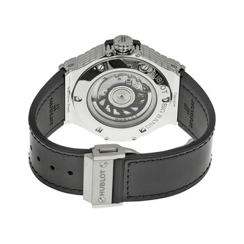 Stainless steel case with a black rubber and black calfskin leather strap. Fixed stainless steel bezel. Stainless steel dial with silver-tone hands. No markers. Dial Type: Analog. Date display at the 3 o'clock position. Automatic movement with a 42 hour reserve. Scratch resistant anti-reflective sapphire crystal. Pull / push crown. Transparent sapphire case back. Case diameter: 41 mm. Round case shape. Deployment clasp. Water resistant at 100 meters / 330 feet. Functions: date, hour, minute, second. Luxury watch style. Watch label: Swiss Made. Hublot Big Bang Steel Caviar Stainless Steel Dial Men's Watch 346.SX.0870.VR.