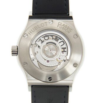 Grey titanium with 228 diamonds for 1.50cts case with a black leather strap. Fixed grey bezel with 138 diamond set 1.95ct. Transparent dial with silver-tone hands and index hour markers. Minute markers around the outer rim. Dial Type: Analog. Date display at the 6 o'clock position. Three sub-dials displaying: month, day, date/moonphase. Hublot Calibre HUB1131 Automatic movement, containing 25 Jewels, composed of 134 parts, bitting at 28800 vph, and has a power reserve of approximately 42 hours. Scratch resistant sapphire crystal. Pull / push crown. Transparent case back. Round case shape, case size: 42 mm. Fold over with push button release clasp. Water resistant at 50 meters / 165 feet. Functions: moon phase, month, date, day, hour, minute, second. Classic Fusion Aerofusion Series. Luxury watch style. Watch label: Swiss Made. Hublot Classic Fusion Aerofusion Automatic Diamond Men's Watch 547.NX.0170.LR.1704.