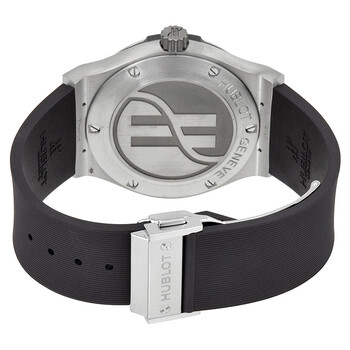 Silver-tone zirconium case with a black rubber strap. Fixed silver-tone zirconium bezel. Black dial with silver-tone skeleton hands and index hour markers. Minute markers around the outer rim. Dial Type: Analog. Date display at the 7 o'clock position. Hublot Caliber HUB1110 Automatic movement, based upon Sellita SW300-1, containing 25 Jewels, bitting at 28800 vph, and has a power reserve of approximately 42 hours. Scratch resistant sapphire crystal. Pull / push crown. Solid case back. Round case shape, case size: 42 mm. Band width: 24 mm. Deployment clasp. Water resistant at 100 meters / 330 feet. Functions: date, hour, minute, second. Classic Fusion Series. Luxury watch style. Watch label: Swiss Made. Item Variations: 501 ZX 1170 RX, 501-ZX-1170-RX, 501/ZX/1170/RX, 501ZX1170RX. Hublot Classic Fusion Automatic Black Dial Men's Watch 501.ZX.1170.RX.