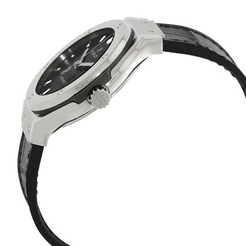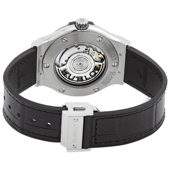 Grey titanium case with a black leather strap. Fixed grey titanium bezel. Black dial with silver-tone hands and index hour markers. Dial Type: Analog. Date display at the 3 o'clock position. Hublot Calibre HUB1110 Automatic movement, based upon Sellita SW300-1, containing 21 Jewels, composed of 63 parts, bitting at 28800 vph, and has a power reserve of approximately 42 hours. Scratch resistant sapphire crystal. Round case shape, case size: 38 mm. Deployment with push button release clasp. Water resistant at 50 meters / 165 feet. Functions: date, hour, minute, second. Additional Info: original box, international warranty card, manual (complete accessories). Classic Fusion Series. Luxury watch style. Watch label: Swiss Made. Hublot Classic Fusion Automatic Black Dial Men's Watch 565.NX.1470.LR.