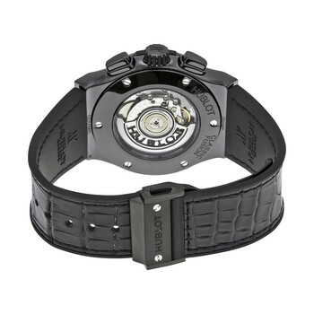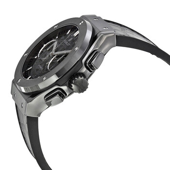 Black ceramic case with a alligator outer / rubber inner strap. Fixed black ceramic bezel. Skeleton dial with silver-tone hands and index hour markers. Minute markers around the outer rim. Dial Type: Analog. Luminescent hands and markers. Date display at the 6 o'clock position. Chronograph - two sub-dials displaying: 60 second and 30 minute. Automatic movement with a 42-hour power reserve. Scratch resistant sapphire crystal. Pull / push crown. Transparent case back. Case diameter: 45 mm. Round case shape. Band width: 24 mm. Band length: 8 inches. Push button fold over clasp. Water resistant at 50 meters / 165 feet. Functions: chronograph, date, hour, minute, second. Luxury watch style. Watch label: Swiss Made. Item Variations: 525 CM 0170 LR, 525-CM-0170-LR, 525/CM/0170/LR, 525CM0170LR.Hublot Classic Fusion Automatic Chronograph Men's Watch 525CM0170LR