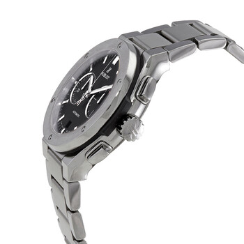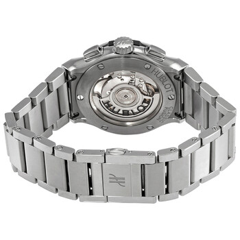 Grey titanium case with a grey titanium bracelet. Fixed grey titanium bezel. Black composite resin bezel lug. Black dial with silver-tone hands and index hour markers. Minute markers around the outer rim. Dial Type: Analog. Date display at the 6 o'clock position. Chronograph - two sub-dials displaying: 60 second and 30 minute. Hublot calibre HUB1153 automatic movement, containing 35 Jewels, composed of 155 parts, bitting at 28800 vph, and has a power reserve of approximately 42 hours. Scratch resistant sapphire crystal. Pull / push crown. Transparent case back. Round case shape. Case size: 42 mm. Fold over clasp with a push button release. Water resistant at 50 meters / 150 feet. Functions: chronograph, date, hour, minute, second. Classic Fusion Series. Luxury watch style. Watch label: Swiss Made. Hublot Classic Fusion Chronograph Automatic Black Dial Watch 540.NX.1170.NX.
