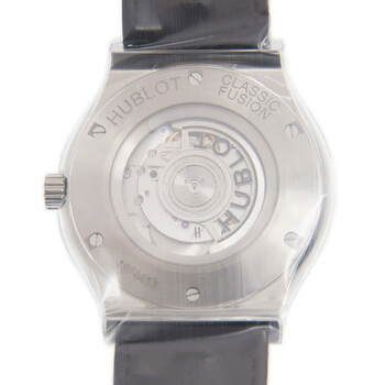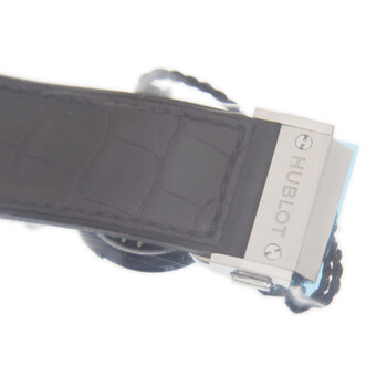 Grey titanium case with a black alligator outer / rubber inner strap. Fixed grey diamond set bezel. Mat black dial with rhodium- plated hands and index hour markers. Dial Type: Analog. Date display at the 3 o'clock position. Hublot Calibre HUB1112 Automatic movement, based upon Sellita SW300-1, containing 25 Jewels, composed of 63 parts, bitting at 28800 vph, and has a power reserve of approximately 42 hours. Scratch resistant sapphire crystal. Skeleton transparent exhibition see through case back. Round case shape, case size: 45 mm. Deployment with push button release clasp. Water resistant at 50 meters / 165 feet. Functions: date, hour, minute, second. Additional Info: bezel set with 126 diamonds, (1.41 carats). Classic Fusion Series. Luxury watch style. Watch label: Swiss Made. Hublot Classic Fusion Mat Black Dial Automatic Men's Diamonds Watch 511.NX.1171.LR.1104.