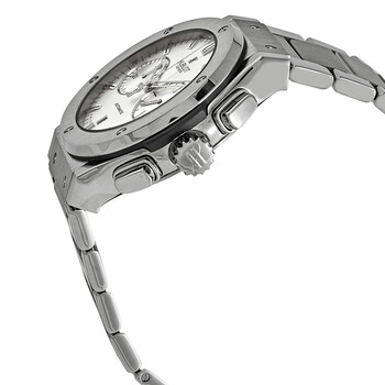 Grey titanium case with a grey titanium bracelet. Fixed grey titanium bezel. Opaline dial with silver-tone skeleton hands and index hour markers. Minute markers around the outer rim. Dial Type: Analog. Date display at the 6 o'clock position. Chronograph - two sub-dials displaying: 30 minutes and 60 seconds. Hublot calibre HUB1143 automatic movement, based upon ETA 2892-A2, containing 59 Jewels, bitting at 28800 vph, and has a power reserve of approximately 42 hours. Scratch resistant sapphire crystal. Pull / push crown. Transparent case back. Round case shape. Case size: 45 mm. Deployment clasp with a push button release. Water resistant at 50 meters / 165 feet. Functions: chronograph, date, hour, minute, second. Luxury watch style. Watch label: Swiss Made. Item Variations: 521 NX 2610 NX, 521-NX-2610-NX, 521/NX/2610/NX, 521NX2610NX. Hublot Classic Fusion Titanium Chronograph Automatic Men's Watch 521.NX.2610.NX.