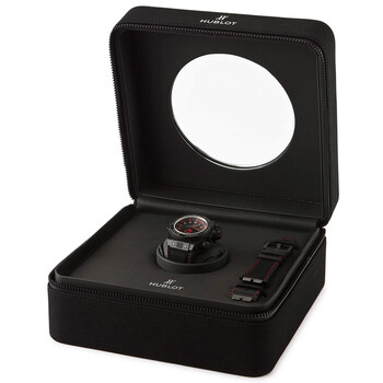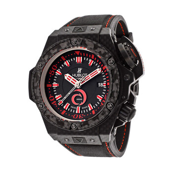 Carbon fiber case with a black rubber and nomex strap. Fixed bezel. Black dial with red luminous hands and index hour markers. Minute markers around the outer rim. Dial Type: Analog. Luminescent hands and markers. Date display at the 3 o'clock position. Automatic movement. Hub 1401 engine. Scratch resistant sapphire crystal. Screw down crown. Solid case back. Case diameter: 48 mm. Round case shape. Tang clasp. Water resistant at4000 meters / 13200 feet. Functions: date, hour, minute, second. Additional Info: limited numbered edition of 100. Luxury watch style. Watch label: Swiss Made. Item Variations: 731 QX 1140 NR AGI12, 731-QX-1140-NR-AGI12, 731QX1140NRAGI12. Hublot King Power Alinghi Black Dial Carbon Fiber Rubber Nomex Men's Watch 731QX1140NRAGI12.