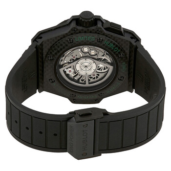 Black carbon fiber case with a black rubber strap. Fixed black carbon fiber bezel. Black dial with luminous silver-tone hands. Dial Type: Analog. Luminescent hands. Four time zone displays. Hublot calibre HUB1220 automatic movement with a 72-hour power reserve. Scratch resistant anti-reflective sapphire crystal. Screw down crown. Transparent case back. Round case shape. Case size: 48 mm. Tang clasp. Water resistant at 100 meters / 330 feet. Functions: chronograph, GMT, hour, minute, second. Additional Info: limited to just 250 watches!. Luxury watch style. Watch label: Swiss Made. Item Variations: 771 QX 1179 RX CSH13, 771-QX-1179-RX-CSH13, 771QX1179RXCSH13. Hublot King Power GMT Chronograph Black Dial Men's Watch 771.QX.1179.RX.CSH13.