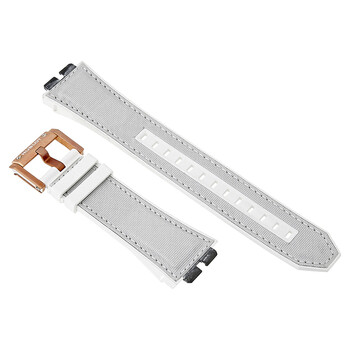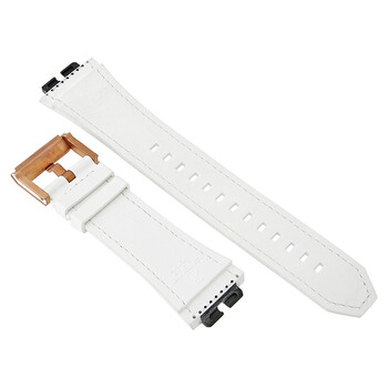 18kt rose gold case with a white rubber strap. Fixed 18kt rose gold bezel. White dial with gold-toned hands and index hour markers. Minute markers around the outer rim. Dial Type: Analog. Luminescent hands and markers. Date display between 4 and 5 o'clock position. One subdial displaying: small second. Hublot Calibre HUB4160 Automatic movement, containing 25 Jewels, composed of 234 parts, bitting at 28800 vph, and has a power reserve of approximately 42 hours. Scratch resistant sapphire crystal. Solid case back. Round case shape, case size: 48 mm. Tang clasp. Water resistant at 1000 meters / 3300 feet. Functions: chronograph, date, hour, minute, small second. Additional Info: limited edition of only 100 pieces. King Power Oceanographic Series. Dive watch style. Watch label: Swiss Made. Item Variations: 732 OE 2180 RW, 732-OE-2180-RW, 732/OE/2180/RW, 732OE2180RW. Hublot King Power Oceanographic White Dial Chronograph Men's Watch 732OE2180RW.