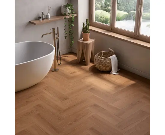 ესპანური კერამიკული ფილა Halcon Ceramicas, რომლის წყალობითაც პატარა სივრცეები უფრო ფართოდ გამოიყურება და ქმნის უწყვეტობის ეფექტს.