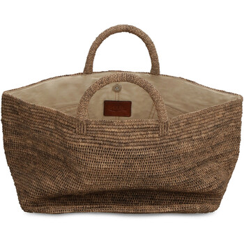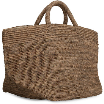 Ibeliv Ladies Tote. SKU: VANILLA-DARK TEA. Barcode: 3760368820845. Color: Brown. Ibeliv Raffia Tote Bag. Made from woven raffia and leather, this basket features a double handle rope design and a snap button closure. The cotton interior includes four pockets for added organization.
