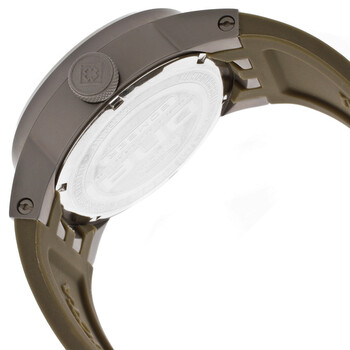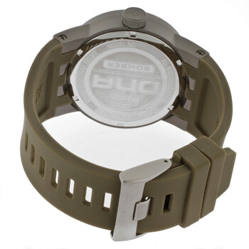 Titanium case with a green professional silicone rubber divers strap. Fixed bezel. Green dial with luminous yellow-tipped hands. Dial Type: Analog. Luminescent hands and markers. Quartz movement. Scratch resistant flame fusion crystal. Pull / push crown. Solid case back. Case diameter: 46 mm. Case thickness: 15 mm. Round case shape. Band width: 33.5 mm. Band length: 9.5 inches. Tang clasp. Water resistant at 100 meters / 330 feet. Functions: hour, minute, second. Casual watch style. Invicta Dna Bomber Men's Watch 11650.
