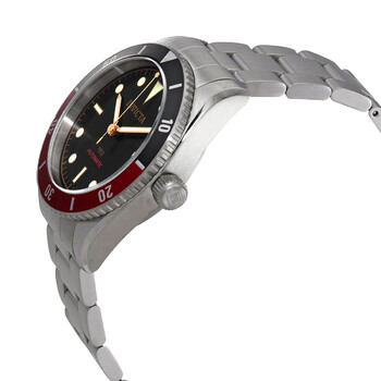 Stainless steel case with a stainless steel bracelet. Uni-directional rotating stainless steel bezel with a black and red (Coke) ring. Black dial with luminous gold-tone hands and dot hour markers. Minute markers around the outer rim. Dial Type: Analog. Luminescent hands and markers. SII caliber NH35A automatic movement, containing 24 Jewels, bitting at 21600 vph, and has a power reserve of approximately 41 hours. Scratch resistant mineral crystal. Screw down crown. Transparent case back. Round case shape. Case size: 40 mm. Case thickness: 14.5 mm. Band width: 20 mm. Band length: 7.75 inches. Fold over clasp. Water resistant at 200 meters / 660 feet. Functions: hour, minute, second. Pro Diver Series. Casual watch style. Watch label: Japan Movt. Invicta Pro Diver Black Dial Coke Bezel Men's Watch 34334.