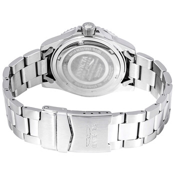 The Invicta Pro Diver Men's Watch 26970 features a robust stainless steel case and bracelet, complemented by a uni-directional rotating bezel with a black aluminum top ring. The black dial is accentuated with luminous silver-tone hands and dot hour markers, along with minute markers on the outer rim. This watch is powered by the reliable Hattori caliber PC32 quartz movement and is protected by scratch-resistant flame fusion crystal. The date is conveniently displayed at the 3 o'clock position. The solid case back and pull/push crown contribute to its water resistance of 200 meters / 660 feet, making it suitable for professional marine activity and surface water sports. The round case measures 40 mm in diameter, with a band width of 20 mm, secured by a fold-over clasp. This casual style watch, labeled with Japan Movt, is perfect for any occasion.