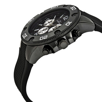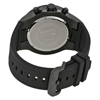 Black ion-plated stainless steel case with a black polyurethane strap. Uni-directional rotating black ion-plated bezel. Black dial with luminous silver-tone hands and index hour markers. Arabic numerals appear at the 3, 6, 9 and 12 o'clock positions. Minute markers. Tachymeter markings around the outer rim. Dial Type: Analog. Luminescent hands and markers. Date display between the 4 and 5 o'clock positions. Chronograph - three silver sub-dials displaying: 60 second, 60 minute and 24 hour. Hattori caliber VD53 quartz movement. Scratch resistant flame fusion crystal. Pull / push crown. Solid case back. Round case shape. Case size: 52 mm. Case thickness: 15 mm. Band width: 32 mm. Band length: 9.25 inches. Tang clasp. Water resistant at 100 meters / 330 feet. Functions: chronograph, date, GMT, second time zone, hour, minute, second. Additional Info: in general, suitable for swimming and snorkeling, but not scuba diving. Sport watch style. Watch label: Japan Movt. Invicta Pro Diver Chronograph Black Dial Men's Watch 20274.
