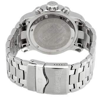 Silver-tone stainless steel case and bracelet. Uni-directional rotating silver-tone stainless steel with a blue ion-plated ring bezel. Blue dial with silver-tone skeleton hands and dot hour markers. Minute markers around the outer rim. Dial Type: Analog. Luminescent hands and markers. Date display at the 4 o'clock position. Chronograph - three sub-dials displaying: 60 second, 60 minute and 24 hour. ISA Caliber 6371C quartz movement. Scratch resistant Flame Fusion crystal. Pull / push crown. Solid case back. Round case shape, case size: 49 mm, case thickness: 17 mm. Band width: 26 mm, band length: 8.5 inches. Deployment clasp. Water resistant at 200 meters / 660 feet. Functions: chronograph, date, hour, minute, second. Pro Diver Series. Casual watch style. Watch label: Swiss Parts Movement. Invicta Pro Diver Chronograph Blue Dial Men's Watch 0070.