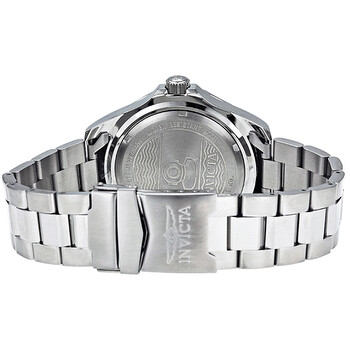 Stainless steel case with a stainless steel bracelet. Uni-directional rotating stainless steel bezel with an inlaid red PVD ring. Black (carbon fiber) dial with luminous silver-tone hands and dot hour markers. Minute markers around the outer rim. Dial Type: Analog. Luminescent hands and markers. Date display at the 3 o'clock position. ISA caliber 2331/103 quartz movement. Scratch resistant Flame Fusion crystal. Pull / push crown. Solid case back. Round case shape. Case size: 47 mm. Case thickness: 13 mm. Band width: 22 mm. Band length: 8.75 inches. Fold over clasp. Water resistant at 200 meters / 660 feet. Functions: date, hour, minute, second. Pro Diver Series. Casual watch style. Invicta Pro Diver Grand Diver Black Carbon Fiber Dial Men's Watch 12565.