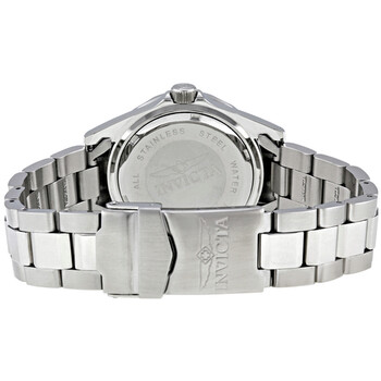 Silver-tone stainless steel case and bracelet. Uni-directional rotating silver-tone stainless steel with an inlaid blue and red (pepsi) ion-plated (count-up elapsed time) top ring bezel. Silver dial with luminous silver-tone Mercedes-logo and Breguet-style hands and dot hour markers. Minute markers around the outer rim. Dial Type: Analog. Luminescent hands and dial markers. Date display at the 3 o'clock position. Hattori Caliber PC32A quartz movement. Scratch resistant mineral crystal. Pull / push crown. Stainless steel case back. Round case shape, case size: 38 mm, case thickness: 11 mm. Band width: 18 mm, band length: 8.25 inches. Deployment with safety release clasp. Water resistant at 200 meters / 660 feet. Functions: hours, minutes, seconds, date. Pro Diver Series. Sport watch style. Watch label: Japan Movt. Invicta Pro Diver Quartz Silver Dial Pepsi Bezel Men's Watch 8933.