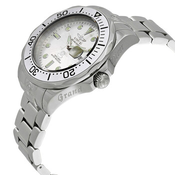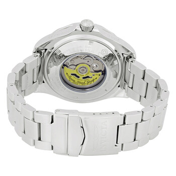Stainless steel case with a stainless steel bracelet. Uni-directional rotating stainless steel bezel. Silver dial with luminous silver-tone hands and dot hour markers. Minute markers around the outer rim. Dial Type: Analog. Luminescent hands and markers. Date display at the 3 o'clock position. SII caliber NH35A automatic movement with a 41-hour power reserve. Scratch resistant mineral crystal. Screw down crown. Solid case back. Round case shape. Case size: 47 mm. Case thickness: 15 mm. Band width: 22 mm. Fold over clasp with a safety release. Water resistant at 300 meters / 1000 feet. Functions: date, hour, minute, second. Additional Info: suitable for scuba diving to a depth of 30 meters for up to 2 hours. Casual watch style. Watch label: Japan Movt. Invicta Pro Diver Silver Dial Stainless Steel Men's Watch 13937.