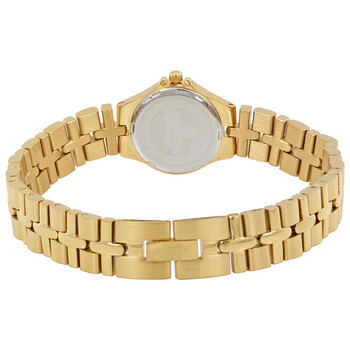 Gold-tone stainless steel case with a gold-tone stainless steel bracelet set with crystals. Fixed gold-tone bezel set with crystals. Black dial with gold-tone hands and index hour markers. A Roman numeral appears at the 12 o'clock position. Minute markers around the outer rim. Dial Type: Analog. Ronda Caliber 763 quartz movement. Scratch resistant flame fusion crystal. Pull / push crown. Solid case back. Round case shape. Case size: 21.5 mm. Case thickness: 7 mm. Band width: 12 mm. Jewelry clasp. Water resistant at 50 meters / 165 feet. Functions: hour, minute, second. Dress watch style. Invicta Wildflower Crystal Black Dial Ladies Watch 17065.
