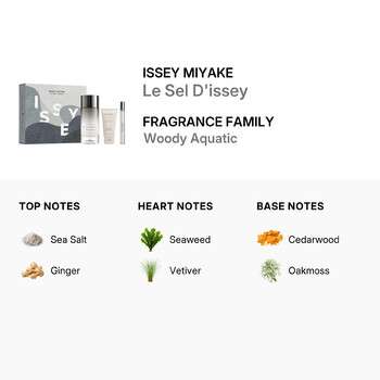 Discover the bold and refreshing essence of Issey Miyake Le Sel D'Issey, a men's fragrance launched in 2024 that captures the strength and serenity of the sea. This woody aquatic scent blends natural elements with modern elegance, making it the perfect gift set for the confident man who embraces both nature and sophistication.