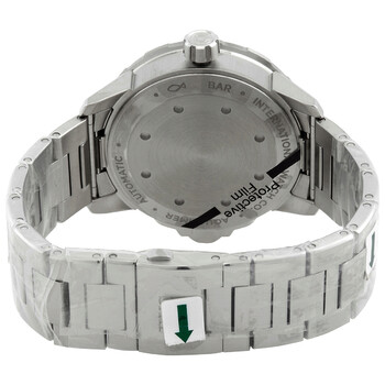 Silver-tone stainless steel case and bracelet. Fixed silver-tone stainless steel bezel. Black dial with silver-tone hands and index hour markers. Minute markers around the outer rim. Dial Type: Analog. Luminescent hands and markers. Date display at the 3 o'clock position. IWC Calibre 32111 automatic movement. Scratch resistant sapphire crystal. Screw down crown. Solid case back. Round case shape, case size: 42 mm, case thickness: 14.10 mm. Fold over clasp with a safety release. Water resistant at 300 meters / 1000 feet. Functions: date, hour, minute, second. Aquatimer Series. Dive watch style. Watch label: Swiss Made. IWC Aquatimer Automatic 42mm Black Dial Men's Watch IW328803.