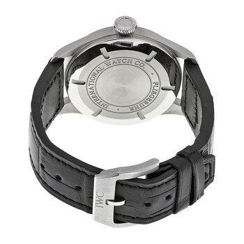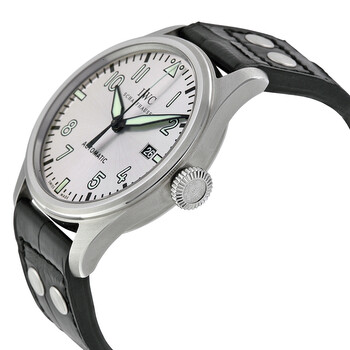 Stainless steel case with a black leather strap. Fixed stainless steel bezel. Silver dial with black hands and alternating Arabic and index numeral hour markers. Minute markers around the outer rim. Dial Type: Analog. Luminescent hands and markers. Date display at the 3 o'clock position. Automatic movement. Father: iwc calibre 51111 son: iwc calibre 30110 engine. Scratch resistant sapphire crystal. Screw down crown. Solid case back. Case diameter: 39 mm. Case thickness: 10 mm. Round case shape. Tang clasp. Water resistant at 60 meters / 200 feet. Functions: date, hour, minute, second. Additional Info: father watch model number: iwc5009-06. son watch model number: iwc3255-19.. Luxury watch style. Watch label: Swiss Made. IWC Big Pilot Son Watch Silver Dial Black Leather Men's Watch IW325519.