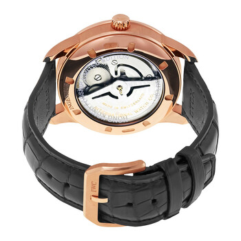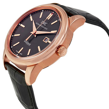 18kt rose gold case with a black alligator leather strap. Fixed 18kt rose gold bezel. Slate dial with luminous rose gold-tone hands and stick hour markers. Minute markers around the outer rim. Dial Type: Analog. Luminescent hands and markers. Date display at the 3 o'clock position. Automatic movement with a 44 hour power reserve. Scratch resistant sapphire crystal. Screw down crown. Skeleton case back. Case diameter: 42.5 mm. Case thickness: 14.5 mm. Round case shape. Water resistant at 120 meters / 400 feet. Functions: date, hour, minute, second. Additional Info: limited to 188 watches. Luxury watch style. Watch label: Swiss Made. IWC Ingenieur Automatic Hong Kong Flagship Rose Gold Men's Watch IW3233-13.