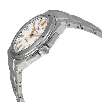 Stainless steel case with a stainless steel bracelet. Fixed stainless steel bezel. Silver dial with rose gold-tone hands and index hour markers. Minute markers around the outer rim. Dial Type: Analog. Luminescent hands and markers. Date display at the 3 o'clock position. Automatic movement with a 42 hour power reserve. Anti-reflective scratch resistant sapphire crystal. Screw down crown. Solid case back. Case diameter: 40 mm. Case thickness: 10 mm. Round case shape. Folding clasp. Water resistant at120 meters / 400 feet. Functions: date, hour, minute, second. Luxury watch style. Watch label: Swiss Made. IWC Ingenieur Automatic Silver Dial Steel Bracelet Men's Watch IW323906.