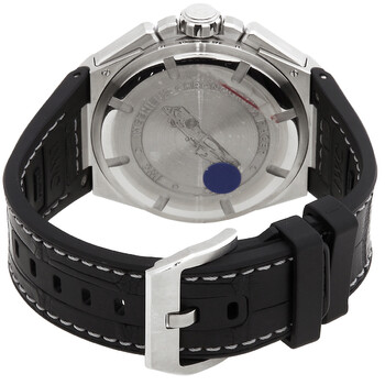 Silver-tone stainless steel case with a black leather strap. Fixed silver-tone stainless steel bezel. Silver dial with luminous blue hands and index hour markers. Minute markers around the outer rim. Dial Type: Analog. Luminescent hands and markers. Date display at the 6 o'clock position. Chronograph - two sub-dials displaying: 60 second and 60 minute. IWC Calibre 89361 Automatic movement, based upon IWC 89360, containing 38 Jewels, and has a power reserve of approximately 68 hours. Scratch resistant sapphire crystal. Screw down crown. Solid case back. Round case shape, case size: 46 mm, case thickness: 15 mm. Tang clasp. Water resistant at 120 meters / 400 feet. Functions: chronograph, flyback, date, hour, minute, small second. Ingenieur Chronograph Racer Series. Luxury watch style. Watch label: Swiss Made. IWC Ingenieur Chronograph Racer Automatic Silver Dial Men's Watch IW378509.