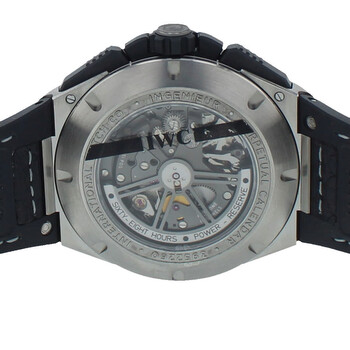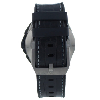 Titanium aluminide case with a black rubber and alligator leather strap. Fixed titanium aluminide bezel. Black dial with luminous hands and stick hour markers. Minute markers around the outer rim. Dial Type: Analog. Luminescent hands and markers. Perpetual calendar displaying day of the week, date and leap year. Chronograph - two sub-dials displaying: 60 second and 60 minute. Automatic movement with 68 hour power reserve. Scratch resistant sapphire crystal. Screw down crown. Skeleton case back. Case diameter: 46 mm. Case thickness: 17 mm. Round case shape. Tang clasp. Water resistant at 120 meters / 400 feet. Functions: chronograph, month, day, date, hour, minute, second. Luxury watch style. Watch label: Swiss Made. IWC Ingenieur Perpetual Calendar Chronograph Titanium Aluminide Men's Watch IW379201.