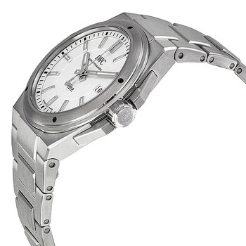 Stainless steel case with a stainless steel bracelet. Fixed stainless steel bezel. Silver dial with silver-tone hands and index hour markers. Minute markers around the outer rim. Dial Type: Analog. Luminescent hands and markers. Date display at the 3 o'clock position. Automatic movement with a 42 hour power reserve. Scratch resistant sapphire crystal. Screw down crown. Solid case back. Case diameter: 40 mm. Case thickness: 10 mm. Round case shape. Deployment clasp with push button. Water resistant at 120 meters / 400 feet. Functions: date, hour, minute, second. Luxury watch style. Watch label: Swiss Made. IWC Ingenieur Silver Stainless Steel Automatic Men's IW323904.