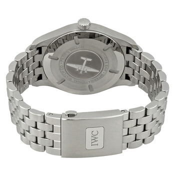 Stainless steel case with a stainless steel bracelet. Fixed stainless steel bezel. Black dial with luminous black hands and Arabic numeral hour markers. Minute markers around the outer rim. Dial Type: Analog. Luminescent hands and markers. Date display at the 3 o'clock position. IWC calibre 35111 automatic movement, based upon Sellita SW300-1, containing 25 Jewels, composed of 163 parts, bitting at 28800 vph, and has a power reserve of approximately 42 hours. Scratch resistant sapphire crystal. Screw down crown. Solid case back. Round case shape. Case size: 40 mm. Case thickness: 11 mm. Band width: 20 mm. Deployment clasp with a push button release. Water resistant at 60 meters / 200 feet. Functions: date, hour, minute, second. Pilot's Mark Xvii Series. Luxury watch style. Watch label: Swiss Made. IWC Mark XVIII Black Dial Automatic Stainless Steel Men's Watch IW327015.