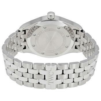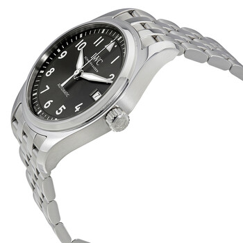 Silver-tone stainless steel case with a silver-tone stainless steel bracelet. Fixed silver-tone stainless steel bezel. Slate grey dial with luminous silver-tone hands and Arabic numeral hour markers. Minute markers around the outer rim. Dial Type: Analog. Luminescent hands and markers. Date display at the 3 o'clock position. IWC Calibre 35111 Automatic movement, based upon Sellita SW300-1, containing 25 Jewels, bitting at 28800 vph, and has a power reserve of approximately 42 hours. Scratch resistant sapphire crystal. Screw down crown. Solid case back. Round case shape, case size: 36 mm, case thickness: 10.5 mm. Fold over with safety release clasp. Water resistant at 60 meters / 200 feet. Functions: date, hour, minute, second. Pilot Series. Pilot watch style. Watch label: Swiss Made. IWC Pilot Automatic Slate Grey Dial Unisex Watch IW324002.