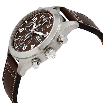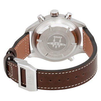 Silver-tone stainless steel case with a brown calfskin leather strap. Fixed silver-tone stainless steel bezel. Tobacco brown dial with luminous silver-tone hands and Arabic numeral hour markers. Minute markers around the outer rim. Dial Type: Analog. Luminescent hands and markers. Day of the week and date display at the 3 o'clock position. Chronograph - three sub-dials displaying: 60 seconds, 30 minute, and 12 hours. IWC Calibre 79420 Automatic movement, based upon ETA 7750, containing 29 Jewels, bitting at 21600 vph, and has a power reserve of approximately 44 hours. Scratch resistant sapphire crystal. Screw down crown. Solid case back. Round case shape, case size: 44 mm, case thickness: 17 mm. Water resistant at 60 meters / 200 feet. Functions: chronograph, rattrapante, date, day, hour, minute, small second. Additional Info: limited edition of 1000 watches. Pilot's "antoine De Saint Exupery" Series. Pilot watch style. Watch label: Swiss Made. IWC Pilot Double Chronograph Automatic Men's Watch IW371808.