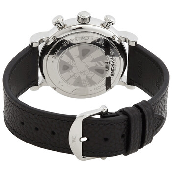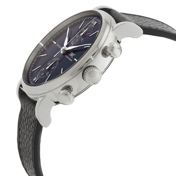Silver-tone stainless steel case with a black leather strap. Fixed silver-tone stainless steel bezel. Blue dial with silver-tone hands and index hour markers. Minute markers around the outer rim. Dial Type: Analog. Chronograph - two sub-dials displaying: 60 second and 30 minute. IWC Calibre 79350 Automatic movement, based upon ETA 7750, containing 31 Jewels, bitting at 28800 vph, and has a power reserve of approximately 44 hours. Scratch resistant sapphire crystal. Solid case back. Round case shape, case size: 39 mm. Water resistant at 30 meters / 100 feet. Functions: chronograph, hour, minute, second. Additional Info: original box, international warranty card, manual (complete accessories). Portofino Series. Luxury watch style. Watch label: Swiss Made. IWC Portofino Chronograph Automatic Blue Dial Men's Watch IW391408.