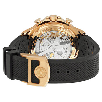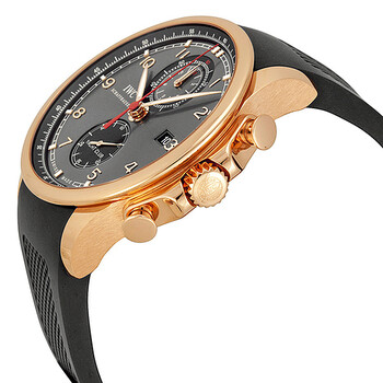 18kt rose gold case with a black rubber strap. Fixed 18kt rose gold bezel. Ardoise dial with luminous hands and Arabic hour markers. Minute markers around the outer rim. Dial Type: Analog. Date display at the 3 o'clock position. Chronograph - three sub-dials displaying: 60 second, 60 minute and 12 hour. Automatic movement. Scratch resistant sapphire crystal. Case diameter: 45.4 mm. Case thickness: 14.5 mm. Round case shape. Water resistant at 60 meters / 200 feet. Functions: chronograph, date, hour, minute, second. Luxury watch style. Watch label: Swiss Made. IWC Portuguese Yacht Club Chronograph Mechanical Men's Watch IW390209.