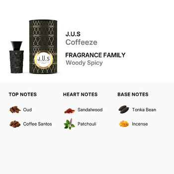 Discover the bold and captivating scent of J.U.S Coffeeze Eau de Parfum Spray in a 2.5 oz bottle. Launched in 2018 by the creative design house of J.U.S, this unisex fragrance is a rich blend of warmth, depth, and mystery that appeals to both men and women alike. Coffeeze is perfect for those who crave a unique scent that stands out without overwhelming the senses.