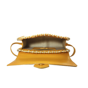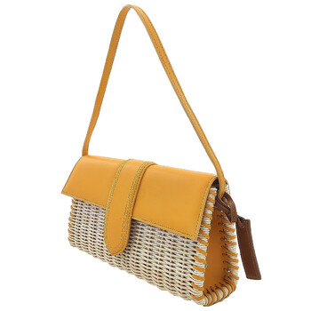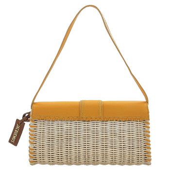Jacquemus Ladies Shoulder Bag. SKU: 231BA0503108290. Color: Yellow. Size: 5.5"H x 11"W x 2.3"D. Jacquemus Yellow Le Bambino Long Woven Shoulder Bag. The Le Bambino bag in a woven wicker design, featuring a foldover top with magnetic fastening, main compartment, single shoulder strap, internal card slot and a cotton lining.