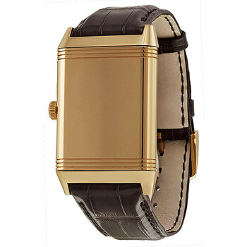 18kt rose gold case with a black alligator leather strap. Fixed 18kt rose gold bezel. Silver dial with blue sword-shaped hands and black Arabic numeral hour markers. Minute markers around an inner ring. Dial Type: Analog. Jaeger LeCoultre Calibre JLC 822 Hand Wind movement, containing 21 Jewels, composed of 134 parts, bitting at 21600 vph, and has a power reserve of approximately 45 hours. Scratch resistant sapphire crystal. Pull / push crown. Solid case back. Rectangle case shape, case size: 48.5 mm x 30 mm, case thickness: 10.2 mm. Tang clasp. Water resistant at 30 meters / 100 feet. Functions: hour, minutes. Additional Info: case flips over to reveal a blank solid case back appropriate for engraving/personalizing. limited & numbered edition of only 200. Grande Reverso Email Series. Luxury watch style. Watch label: Swiss Made. Item Variations: Q3732523, 3732523, 373.25.23, Q373.25.23. Jaeger LeCoultre Grande Reverso Silver Dial 18kt Rose Gold Black Alligator Leather Men's Watch Q3732523.