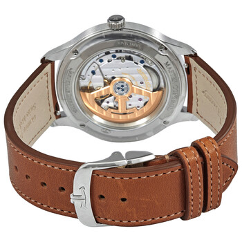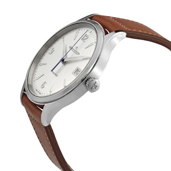 Stainless steel case with a brown (calfskin) leather strap. Fixed stainless steel bezel. Silver dial with silver-tone dauphines hands and index hour markers. Arabic numeral appear at the 6, 9 and 12 o'clock positions. Minute markers around the outer rim. Dial Type: Analog. Jaeger LeCoultre calibre 899AC automatic movement with a 70-hourd power reserve. Scratch resistant sapphire crystal. Transparent case back. Round case shape. Case size: 40 mm. Case thickness: 8.78 mm. Band width: 20 mm. Deployment buckle clasp. Water resistant at 50 meters / 165 feet. Functions: date, hour, minute, second. Master Control Series. Luxury watch style. Watch label: Swiss Made. Jaeger LeCoultre Master Control Automatic Silver Dial Men's Watch Q4018420.