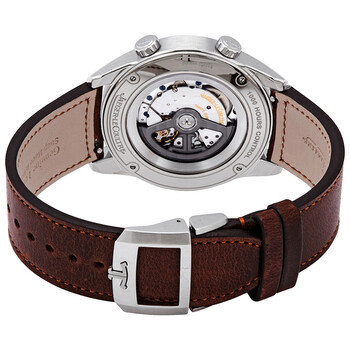 Silver-tone stainless steel case with a brown leather strap. Fixed silver-tone stainless steel bezel. Black dial with silver-tone hands and index hour markers. Arabic numerals mark the 3, 6, 9 and 12 o'clock positions. minute markers around the outer rim. Dial Type: Analog. Luminescent hands and markers. Jaeger LeCoultre Calibre 898E/1 Automatic movement, containing 30 Jewels, composed of 195 parts, bitting at 28800 vph, and has a power reserve of approximately 38 hours. Scratch resistant sapphire crystal. Luminous transparent case back. Round case shape, case size: 41 mm, case thickness: 11.2 mm. Deployment clasp. Water resistant at 100 meters / 330 feet. Functions: hour, minute, second. Polaris Series. Luxury watch style. Watch label: Swiss Made. Jaeger LeCoultre Polaris Automatic Black Dial Men's Watch Q9008471.